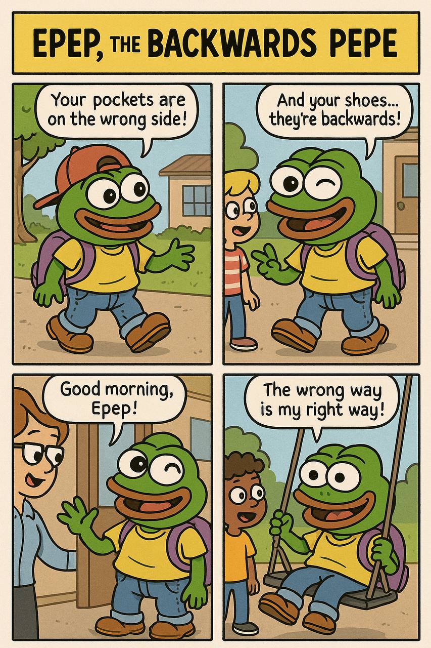 Welcome to the home of Epep, a spin on Pepe that looks at the world through a flipped lens. Epep represents the importance of reversing our thinking on things to bring back the positivity, joy, and collaboration that Web3 has lost over the last few years. It is about taking the time to consider polar opposites and big differences as a means to making the world a better place.